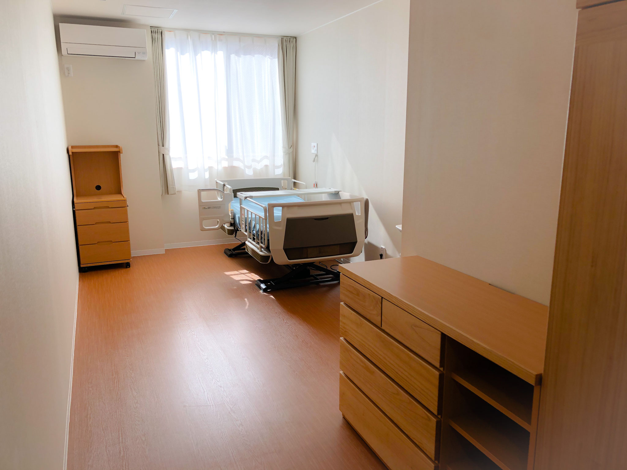 要介護5、気管カニューレ、重度麻痺、胃ろう自宅で過ごされていましたが、介護者が高齢となり施設への入居を検討されました。気管カニューレを装着されているため他施設では困難といわれ、ご縁がありいなほの有料老人ホームへ入居されました。